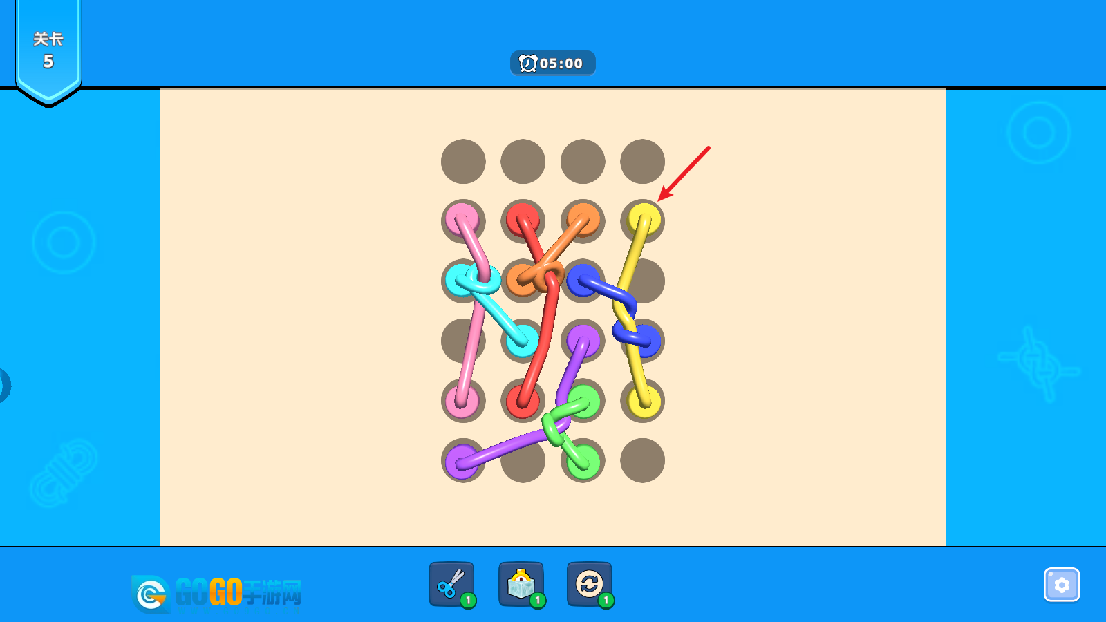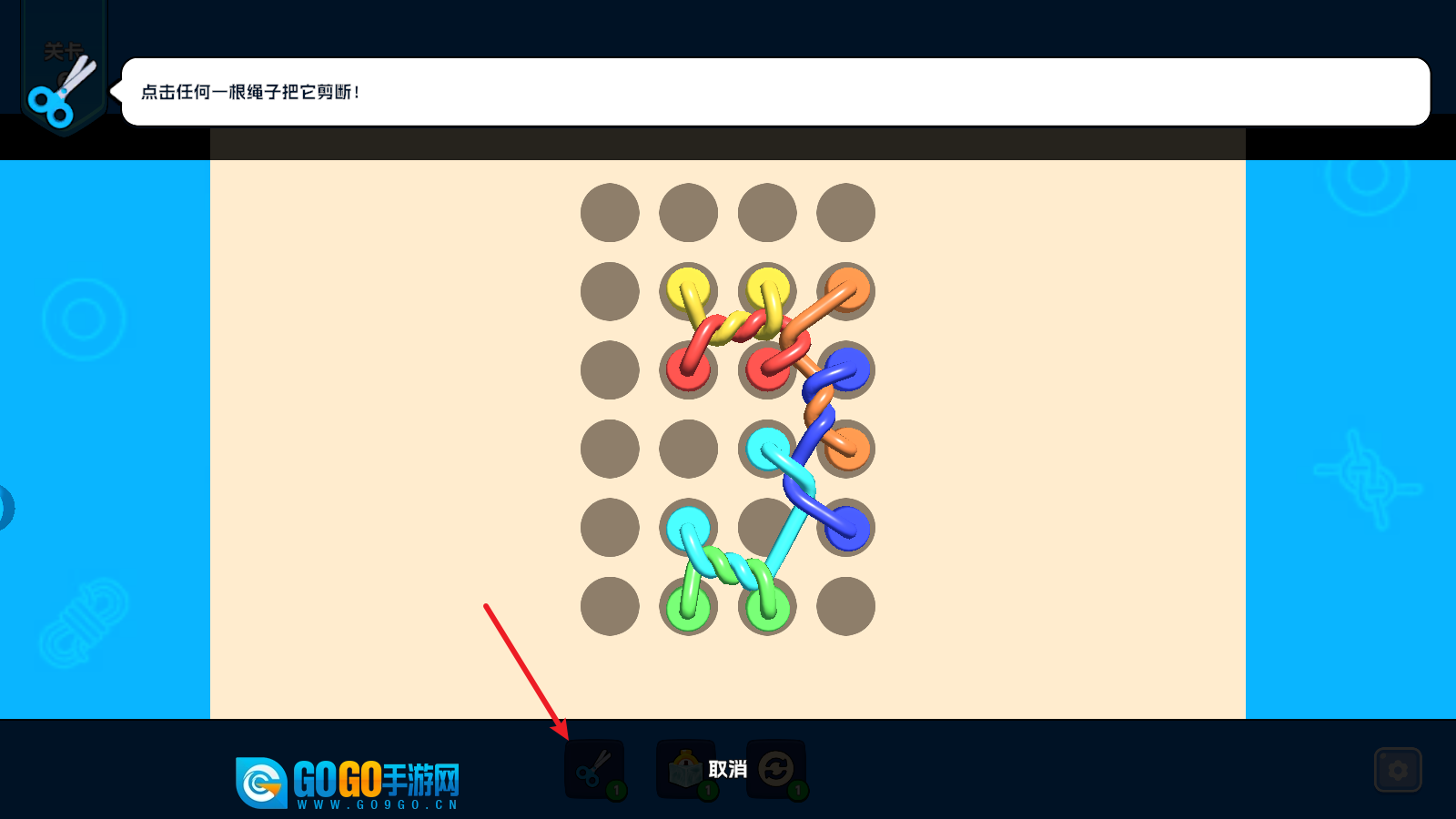 3、通过移动绳头的方式挪开绳子后就会自动消除。