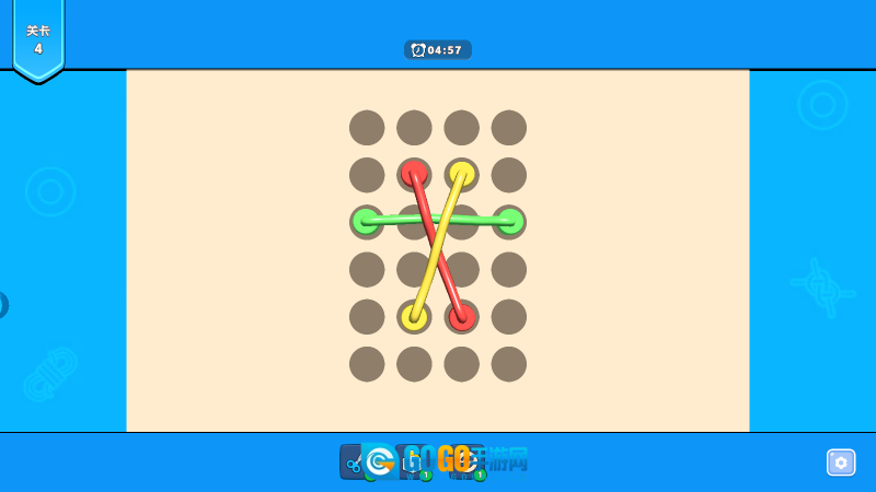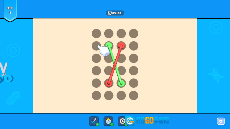 绳子消除是一款休闲益智类的解绳解谜游戏。游戏里会出现色彩缤纷的绳子,它们相互缠绕在一起,玩家需要通过移动绳子两端来调整绳子位置,解开缠绕的绳子并使其成功消除,当所有绳子都被消除后就能通关并获得奖励!另外,游戏中还设置了三种可使用的道具,能帮助你更顺利地闯过关卡!