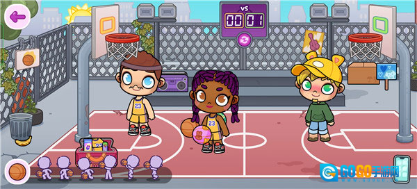 5、创建完成后,我们就能开启自由探索之旅,切换不同场景进行互动,比如到篮球场上打篮球。