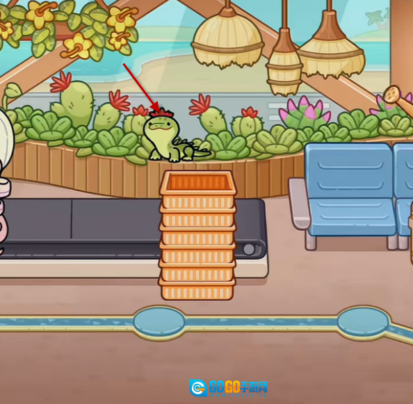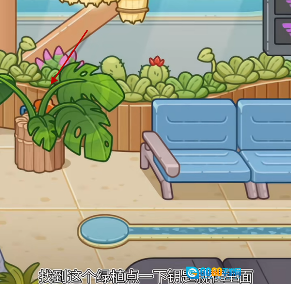 4、随后走到右边的绿植旁,能发现一把隐藏着的钥匙。