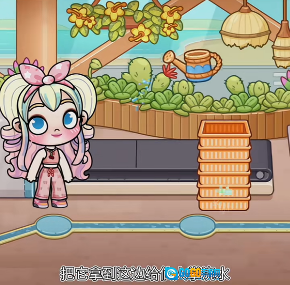 2、将洒水壶移动到另一边,为仙人掌浇水。
