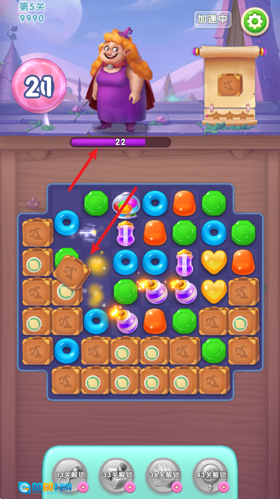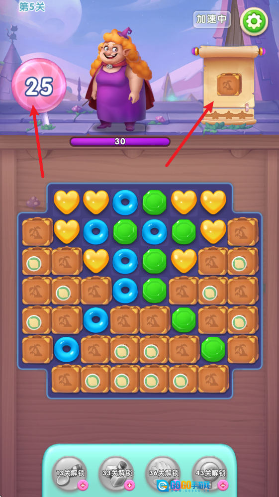 2、关卡中,在上方可以查看剩余步数以及关卡目标。