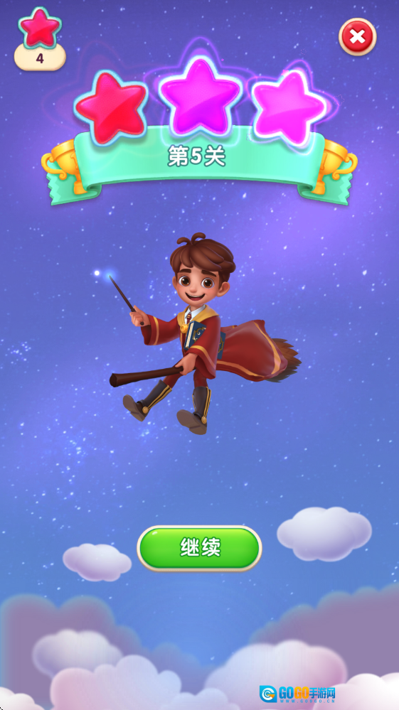 6、完成目标之后就可以顺利过关,获得红星奖励。