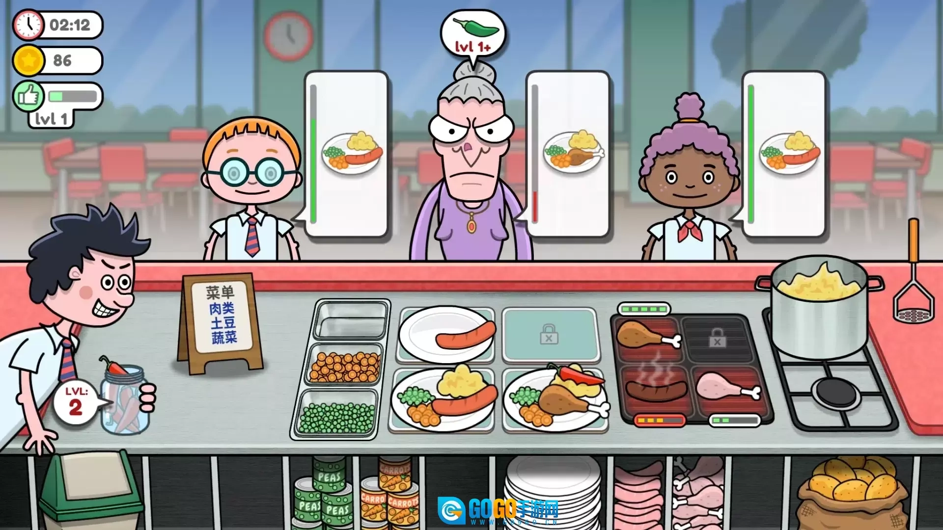这是一款恶搞食堂主题的魔性美食经营游戏。在游戏中,玩家化身厨师,可尝试制作各种口味的美食。核心目标是精准完成客人们的订单,以此获取丰厚奖励。游戏提供了辣椒、土豆等丰富多样的食材,处理起来十分便捷,同时玩家还能随时升级食堂的厨具设备。