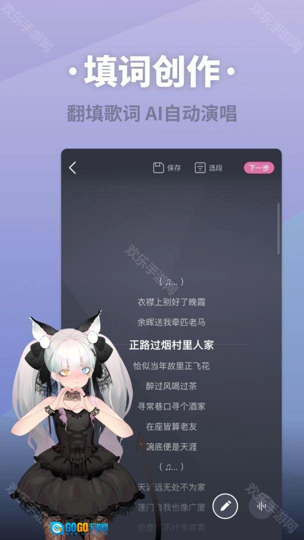 3、玩家可以自主添加歌词,不管是原创内容,还是直接导入古诗、文章以及其他文本都可以。