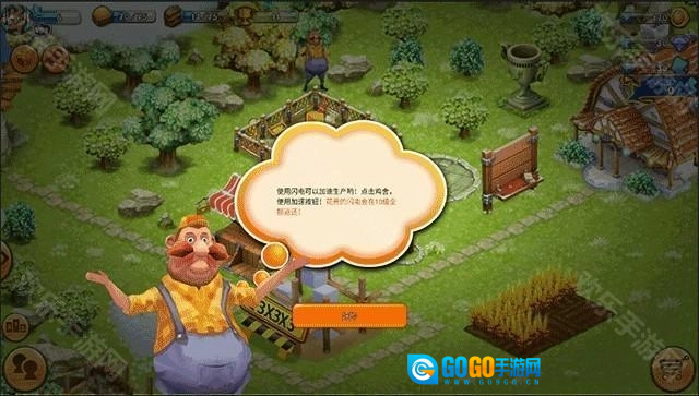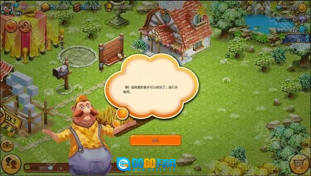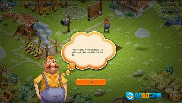2、之后进入庄园就可以开始游玩了,首先需要点击大叔进行对话。