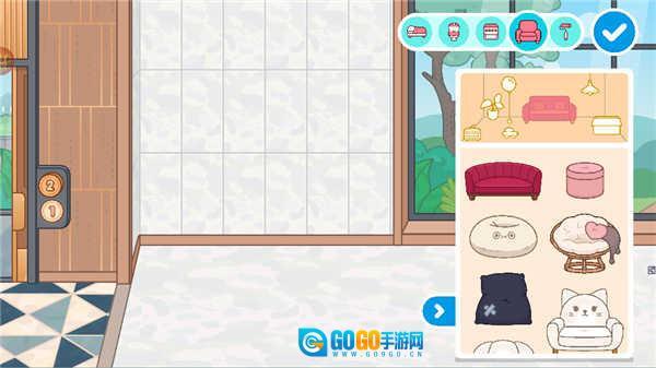 7、点击右上角的装修图标,即可进入家具布置界面,这里有海量家居装饰供你挑选。