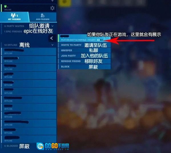 如果你点击任意一位EPIC在线好友,会出现弹窗