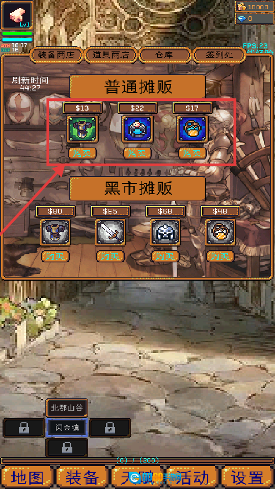 1、在【普通摊贩】那里,建议优先选购价格亲民且性价比高的装备,以此强化基础属性,为在地牢中冒险、打怪和升级提供有力支持。