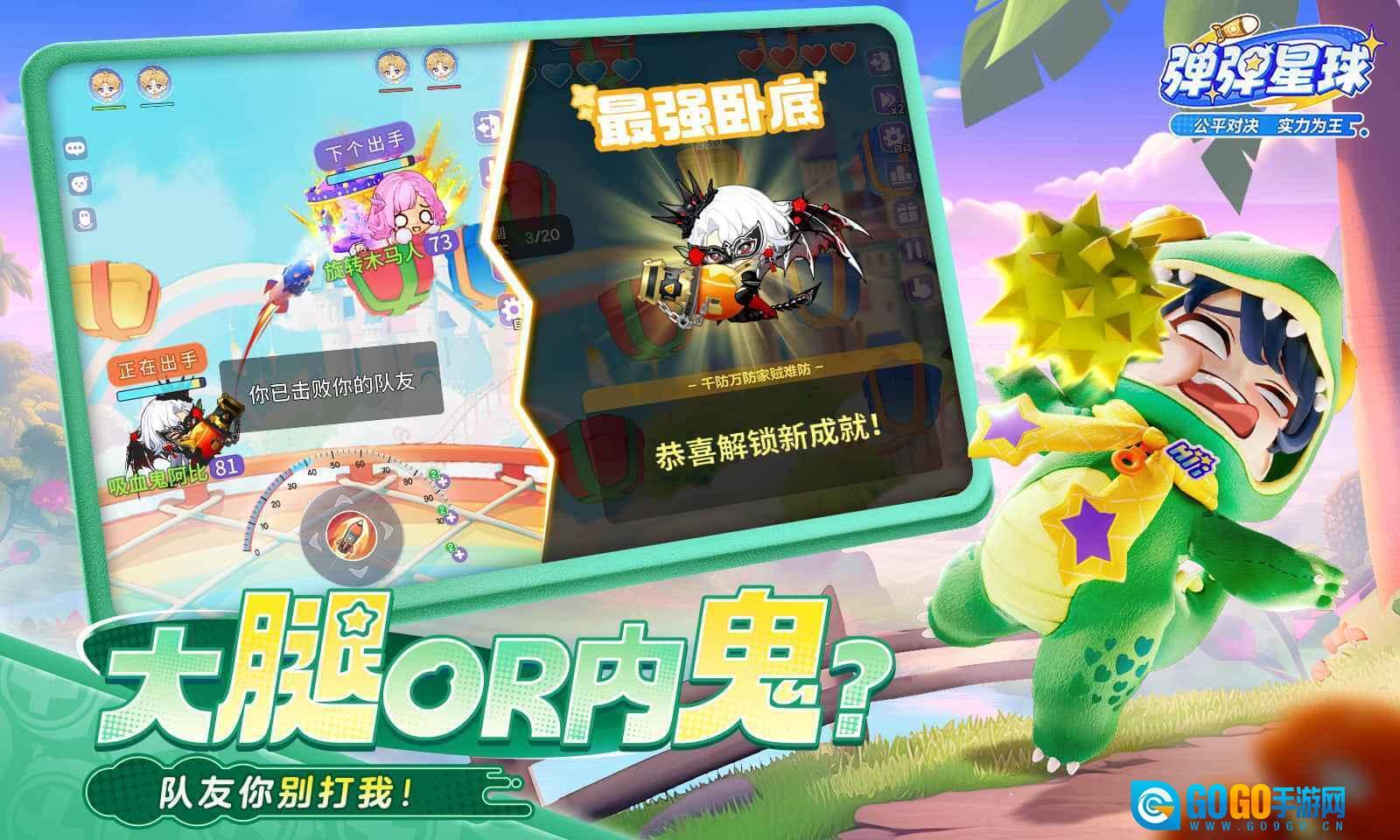 弹弹星球是一款主打公平竞技的2v2弹射闯关游戏。每一场挑战都充满趣味,玩家只需操控主角,就能尽情发动攻击,还能结识好友组队开黑。游戏全程操作简单,只要用好武器就能轻松击败对手,顺利赢得最终胜利。
