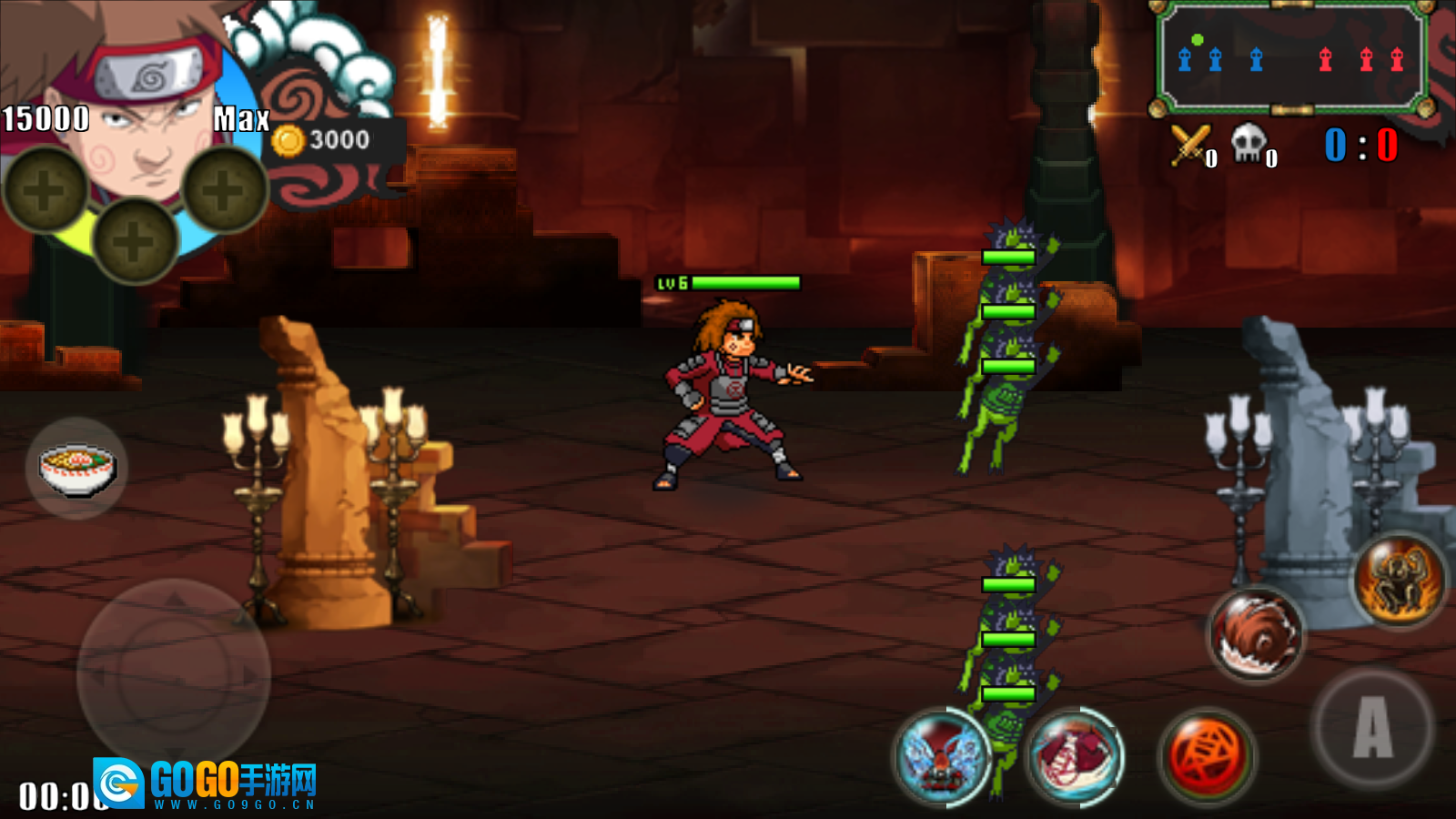 3、如此便可进入关卡挑战,左边是虚拟按键,右边是各类技能,每个技能都设有冷却时间。