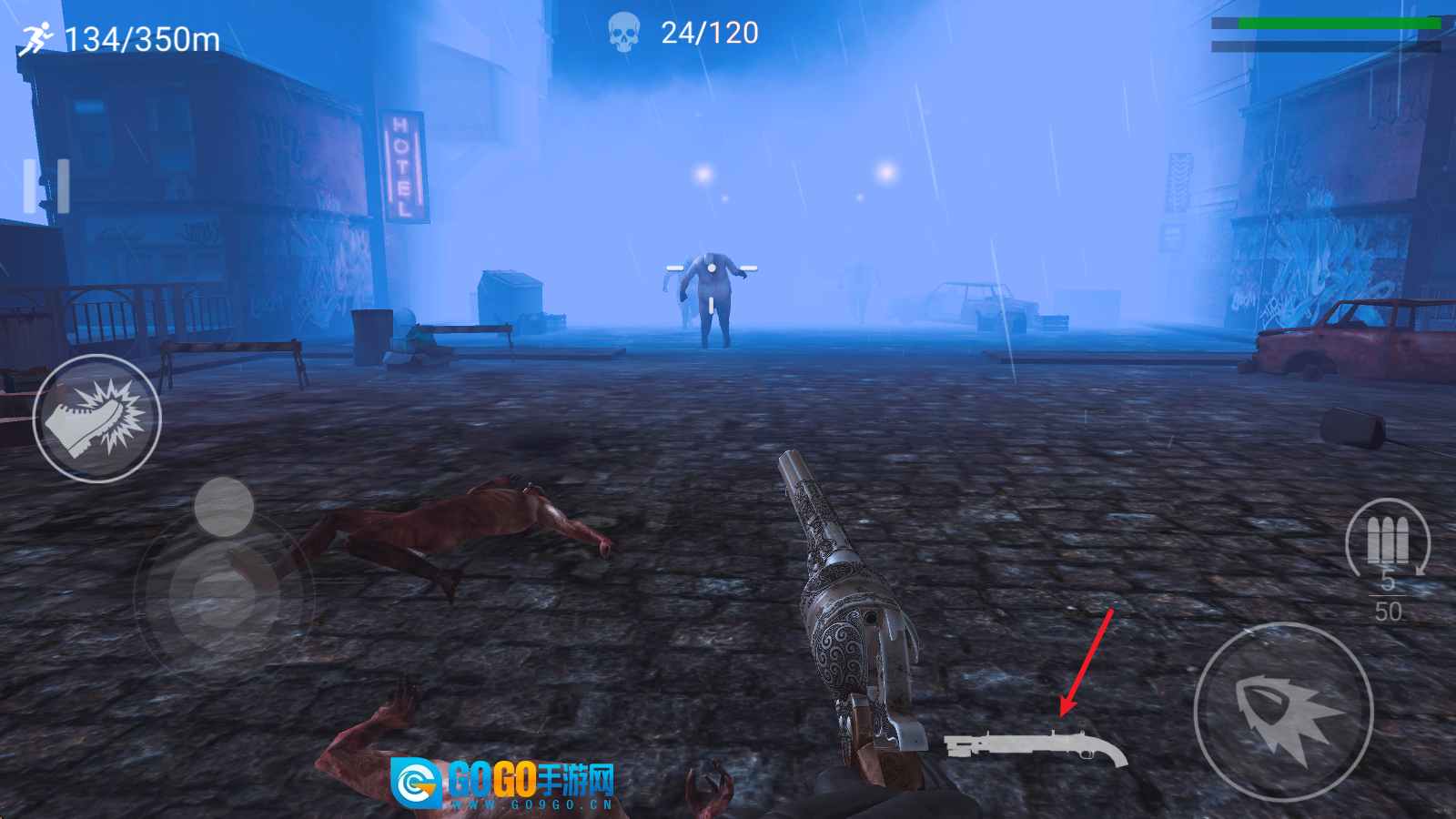 5、当僵尸靠近的时候,还可以使用踢腿攻击。