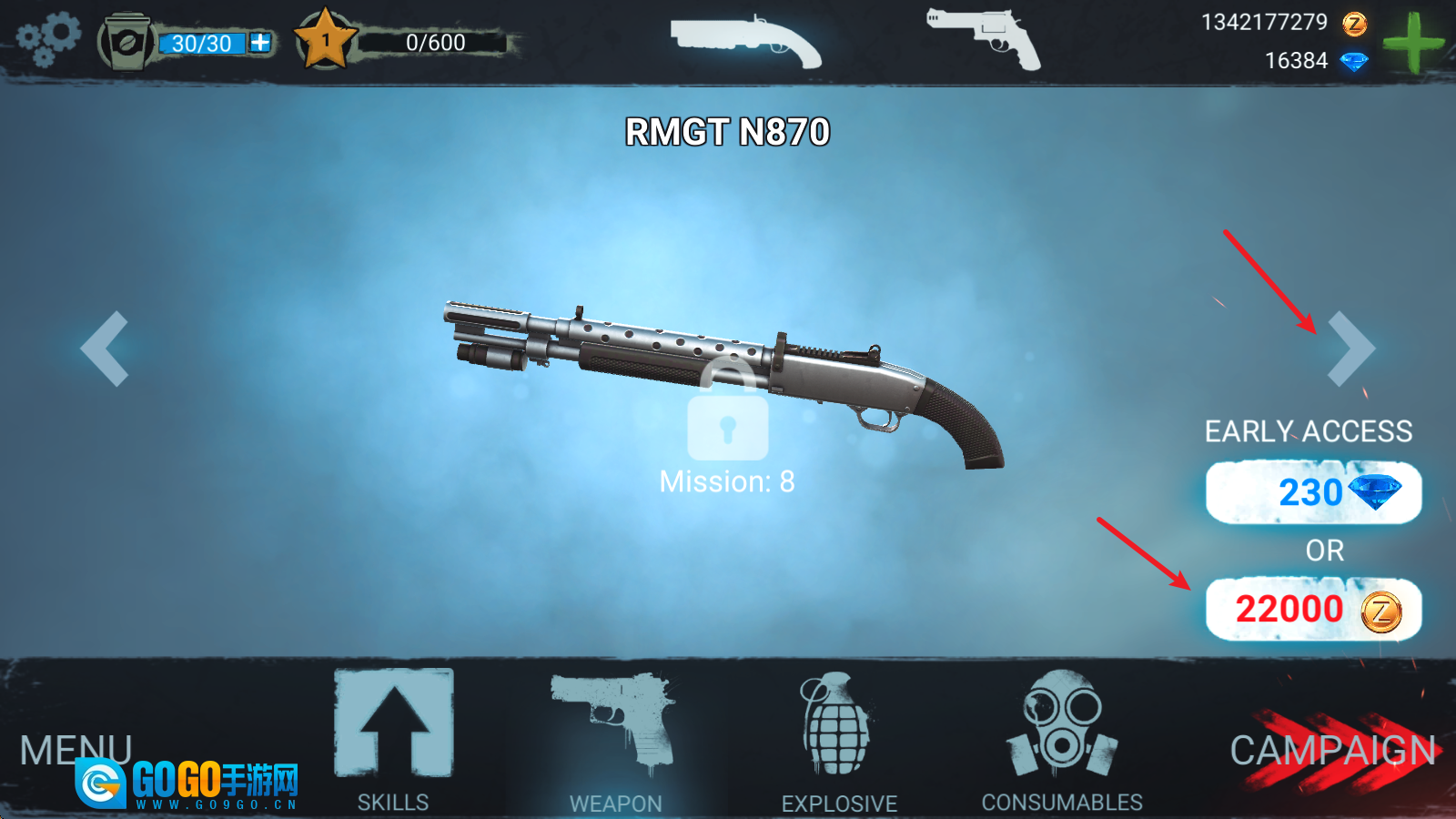2、随后借助此处的箭头就能切换至不同武器,挑选合适的完成购买就可以了。