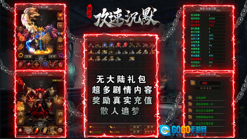 独影攻速沉默,185单职业沉默版本,7座主城、300多张野外地图待你探索,每个大陆都藏着独特的精彩内容!海量剧情带来沉浸式体验,完成剧情不仅能获得真实充值奖励,还能免费解锁专属冠名!游戏内收录1000多件专属装备,丰富多样的BUFF可自由组合,搭配出无限玩法可能!超高打怪爆率邀你体验,进服就能当欧皇,神装满地爆不停!爆!爆!