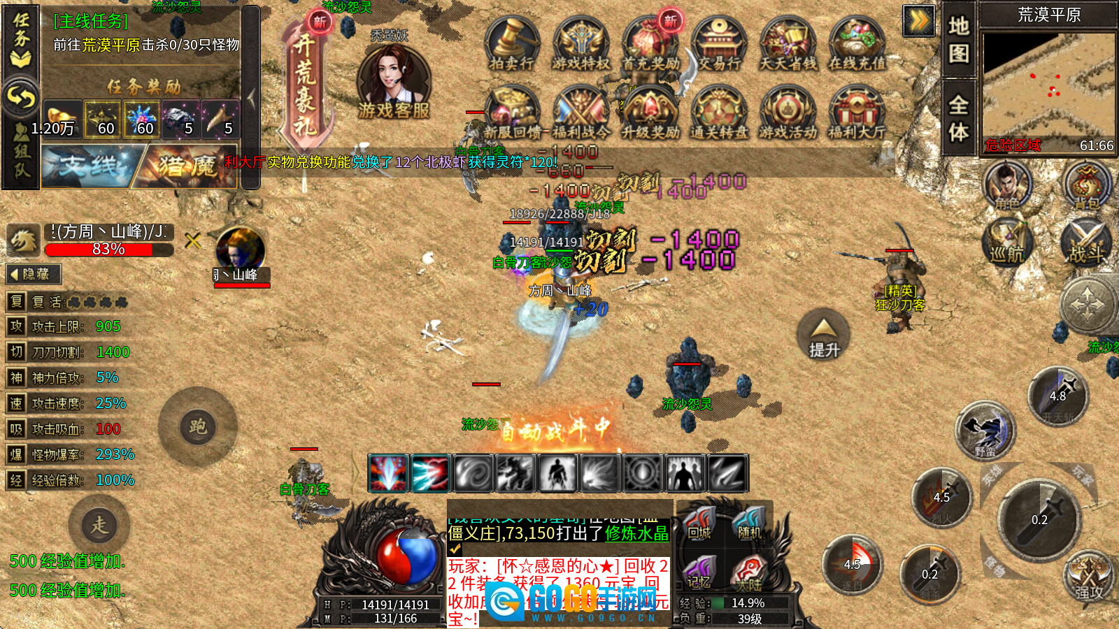2、每日在线、个人首爆、实物兑换等多样福利活动可自由参与,海量元宝、灵符与材料奖励让你领到手软!