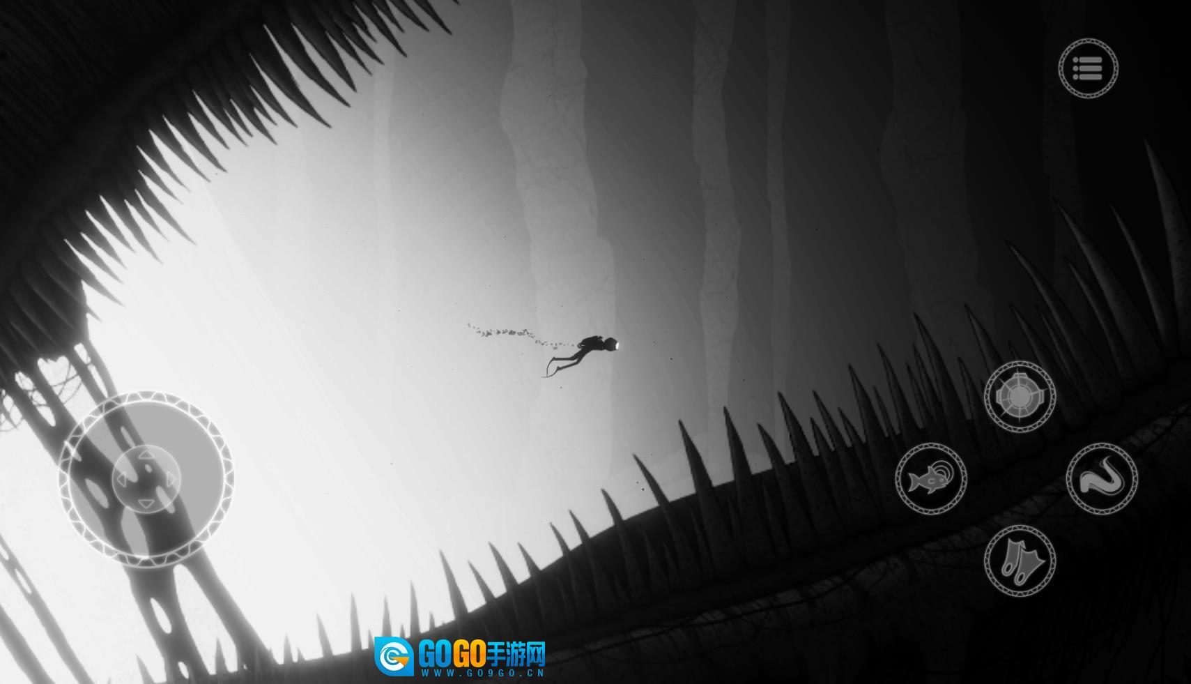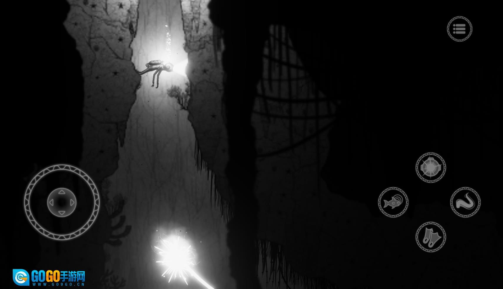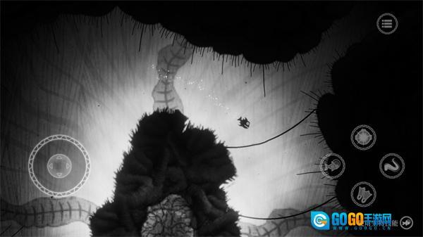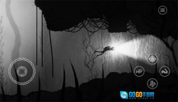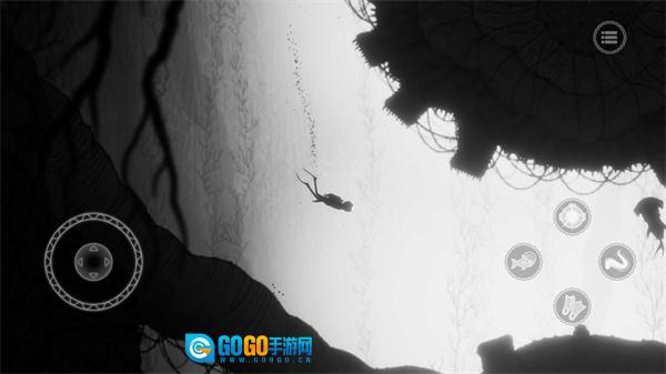 游戏的氛围营造得相当出色,可供探索的区域也颇为丰富,操作方式十分简易。这款游戏既没有运用互动性更突出的三维场景,也没有借助高端的开发引擎去打造逼真的3D画面,而是采用了简约质朴的二维场景以及类似铅笔画风格的手绘式画面。不过,这丝毫没有影响玩家的沉浸体验,反倒让这些场景与游戏氛围形成了完美的呼应。唯有黑白的色调与海底的氛围相互融合,再搭配上游戏里精心制作的背景音乐,才能为玩家带来一种冰冷、死寂、毫无生机的死亡之地的感受。