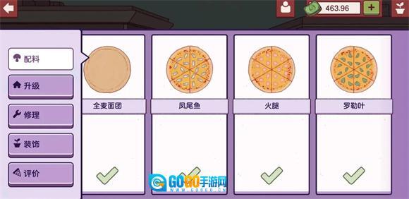2、多种披萨可供你自由创作,各类配料都能解锁后随心使用。