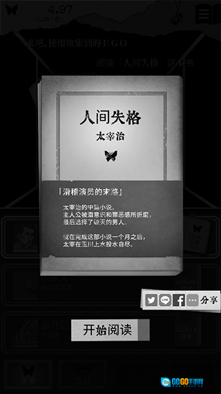 收集到20金币时就可以解锁太宰治著的《人间失格》
