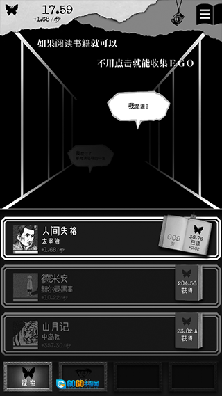 4、可以通过阅读书籍或者继续点击白色对话框来收集更多ego,收集成功后就能解锁更多著作了。