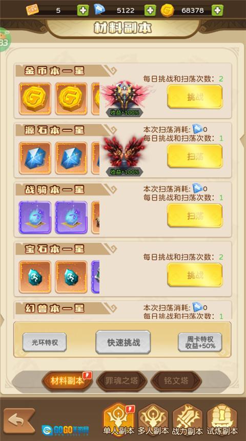 5、还有多种副本模式,同样挑战可以获取相应资源