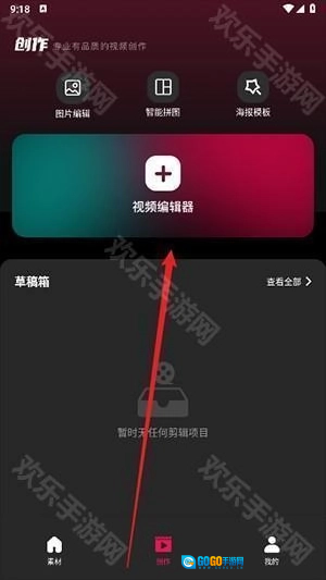 4、点击创作里面的视频编辑器