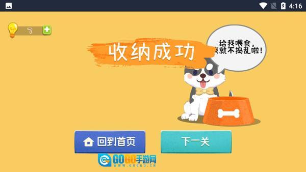 5、只要在限定时间内完成就能通关,要是超时的话,你的狗子就会跑来捣乱,让收纳以失败告终