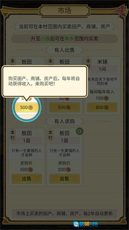 7、点击市场,可以买卖田产、商铺、房产等等;