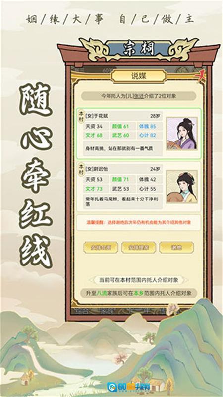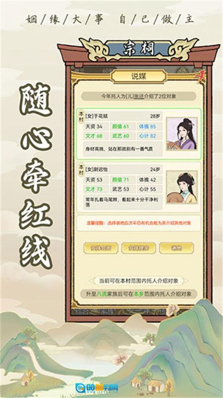 1、新增“红娘馆”玩法,玩家能够在此为族内未婚人士寻觅各地合适的对象安排相亲