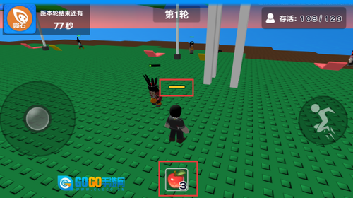 2、在第一轮生存环节,要优先收集场景里的苹果道具,一旦血量偏低就马上使用;另外还要避开其他玩家聚集的区域,以此降低竞争冲突和意外受伤的可能。