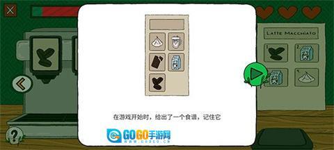 1、进入“咖啡馆”后,右上角会显示食谱,按照这个顺序添加食材即可。