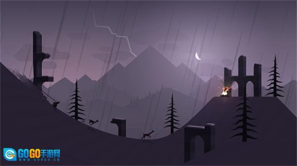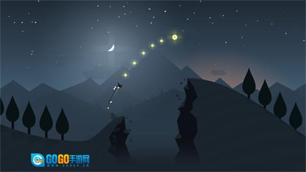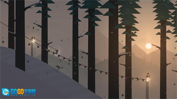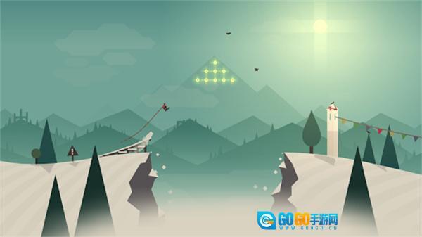 2、玩家将化身为身手矫健的少年阿尔托,在白雪皑皑的山头,俯身加速、腾空起跳、飞跃悬崖,穿越丛林,绕过小屋