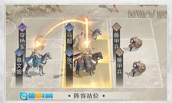 要注意让马超进入张飞和蔡文姬的追击范围,构建出以马超为核心输出的阵型,并且安排盾兵在队伍前排承担伤害,把弓兵、弩兵这类输出型兵种部署在后排位置。