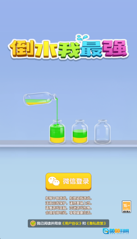 《倒水我最强》是一款玩法简易的倒水类休闲游戏。在游戏里,你会看到多个装有不同颜色液体的瓶子,你的任务是把相同颜色的水倒入同一个瓶子中,尽量将瓶子装满。每装满一个瓶子就完成一部分目标,所有颜色的水都需要分别装满对应的瓶子。感兴趣的玩家可以来尝试体验。