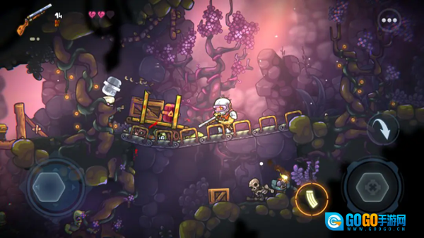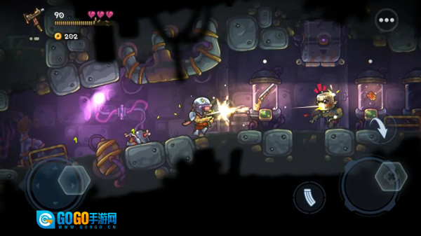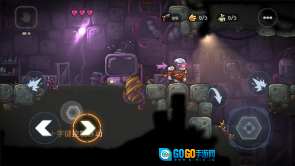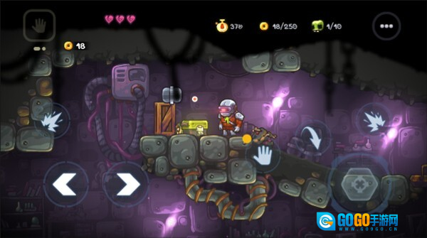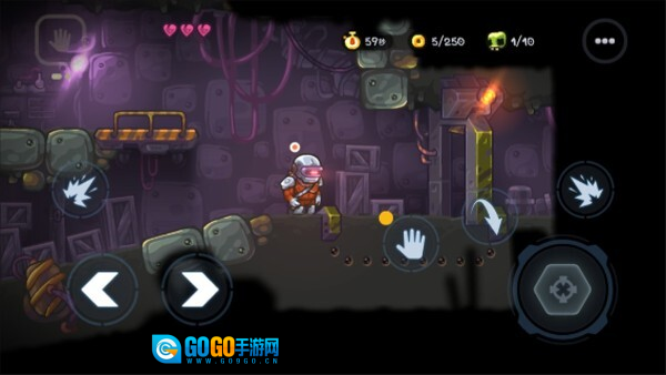 游戏里的每一个关卡都各有特色,我们得借助屏幕两侧的操作按钮来控制游戏角色。
