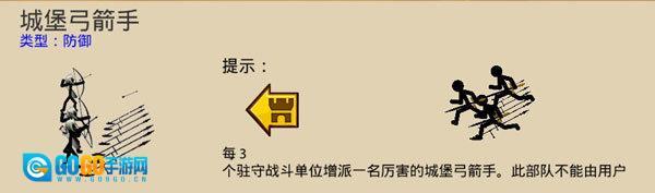 城堡弓箭手:当玩家点击启动城堡防御机制后,该单位便会开始运作,且其行动完全不受玩家操控。