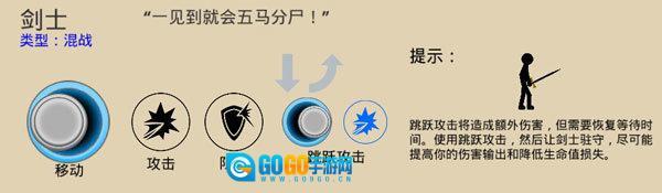 剑士:定位为近战类型,一旦遭遇便会将目标五马分尸,具体的操作方式如下