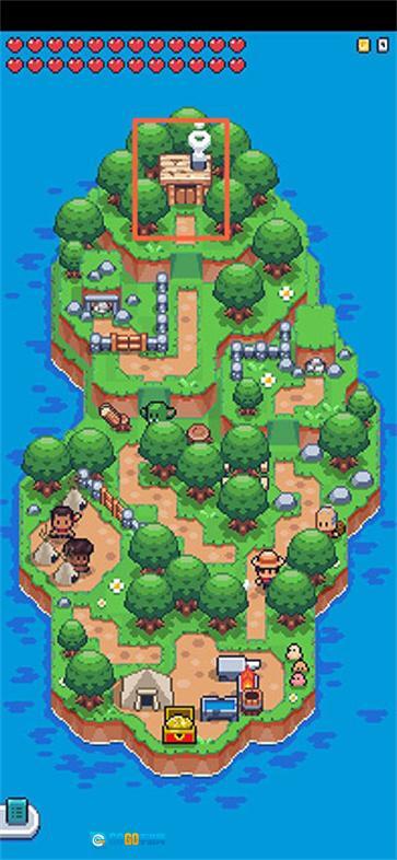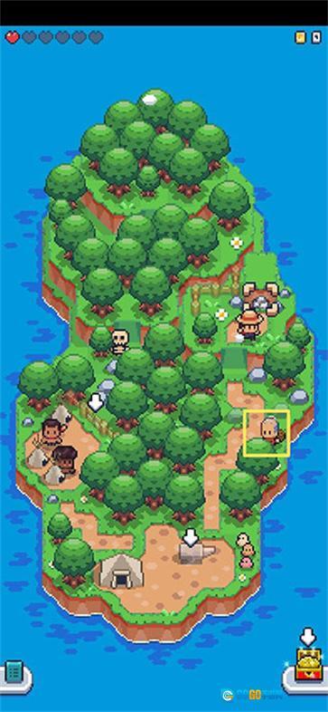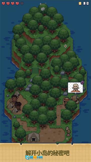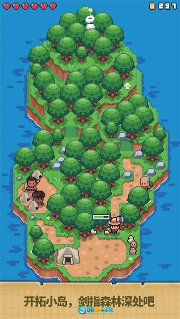 迷你荒岛求生是一款像素风格的模拟求生游戏。游戏里,主角不幸流落至一座荒岛,开局时身边仅有一把铲子相伴。这座小岛被茫茫大海环绕,乍一看除了树木与石头外,似乎再无其他事物。值得注意的是,初始的小铲子仅能铲倒小树,当玩家将所有小树都清理完毕后,新的区域便会随之解锁。此时,两位当地土著会出现在眼前,之后玩家就可以着手挖掘矿石,再用挖到的矿石和收集的木材,从土著那里换取斧头。