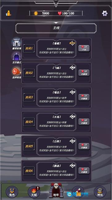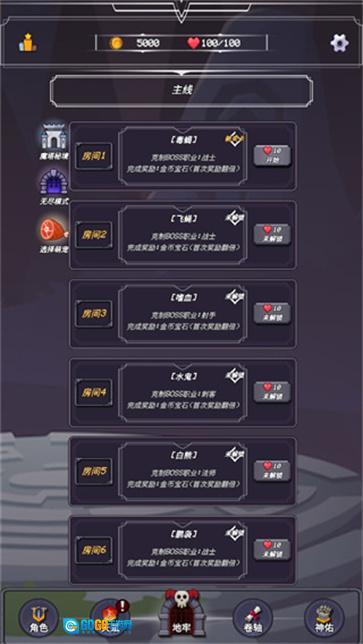 1、多样的地牢场景,每一关都具备独特的布局与怪物配置。