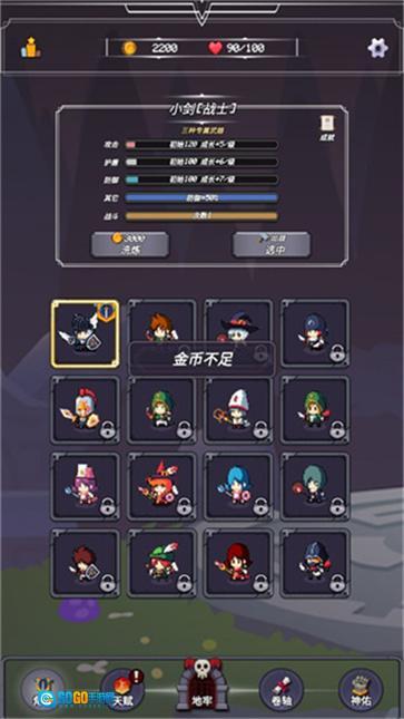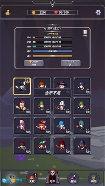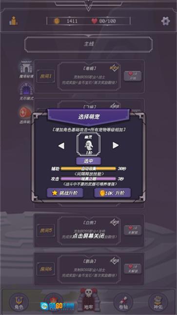 4、此外,要是我们的角色攻击能力不够强,也能够进行升级,并且还可以更换角色。