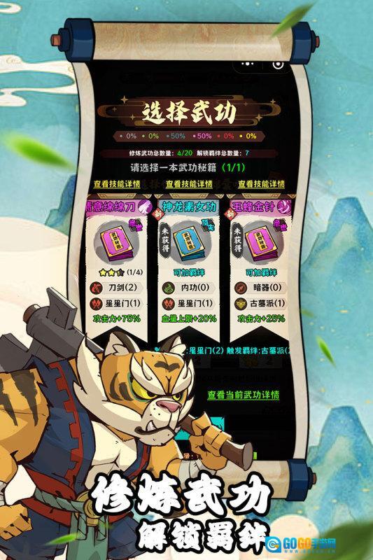 2、你可以体验传统的肉鸽玩法与策略模式,同时还有大量武功可供选择。
