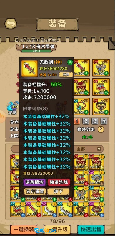 先聊聊推图的事——开局尽量快地推到55章,这样就能制作100级装备了。目前装备的等级上限是100级,基础属性里攻击最高能到600万,血量最高6000万,属性好的装备可以锁定留着备用。精炼之后这些属性能提升到720万攻击和7200万血量,不过这是后期才需要考虑的事。 至于推图的方法,这游戏里提升最明显的是丹药,但丹药有时间限制,具体可以看左上角的丹药界面。建议第一天先买几个丹药(闯关时会弹出购买窗口),尽量在第二天之前推到55章,开始做装备。装备需要准备闯关、挂机、基础属性、高品质这几套,优先做闯关和基础属性的,高品质的看自己需求来就行。