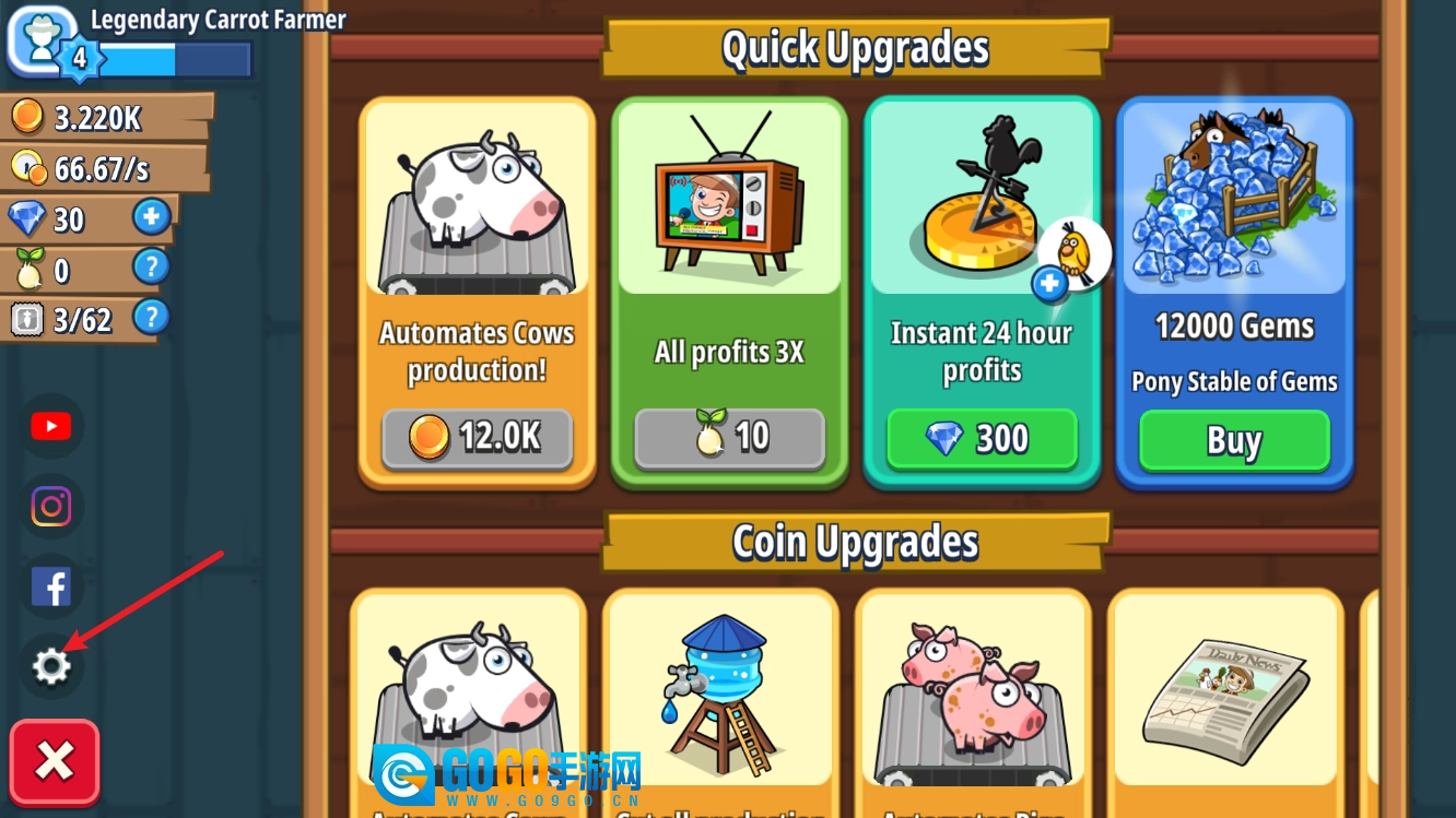 把金币集中起来升级收益更高的作物,能让收入增长得更快,从而为之后解锁土地和进一步发展打下坚实的基础。