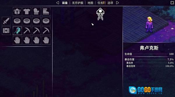 6、点击右上角菜单可调整角色装备,以及暂定保存游戏进度。