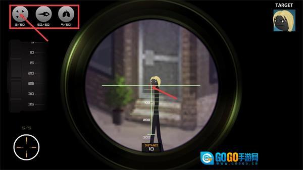 3、关注界面显示的距离数值与状态图标,结合【TARGET】位置校准瞄准,确保射击条件匹配任务要求。
