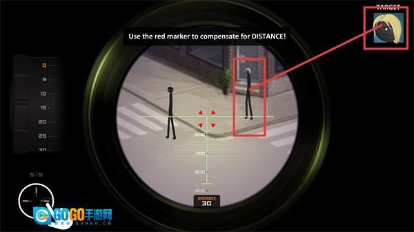 2、瞄准阶段利用【red-marker】补偿【DISTANCE】偏差,锁定【TARGET】时参考提示调整准星,提升命中效率。