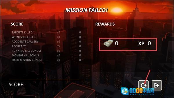 4、出现【MISSION-FAILED!】时,点击重置按钮重试,同时提升【TARGETS-KILLED】等数据以完成任务。