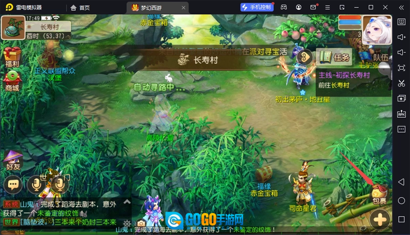 1.启动游戏,点击右下角的【包裹】选项。