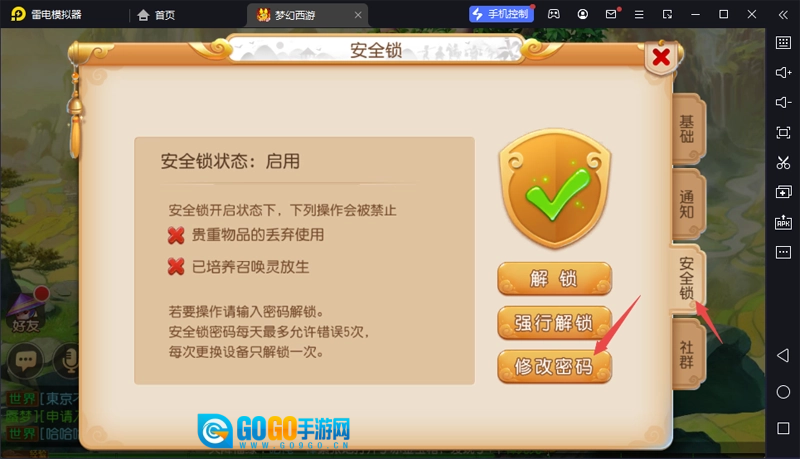 梦幻西游在哪修改安全锁的密码?
