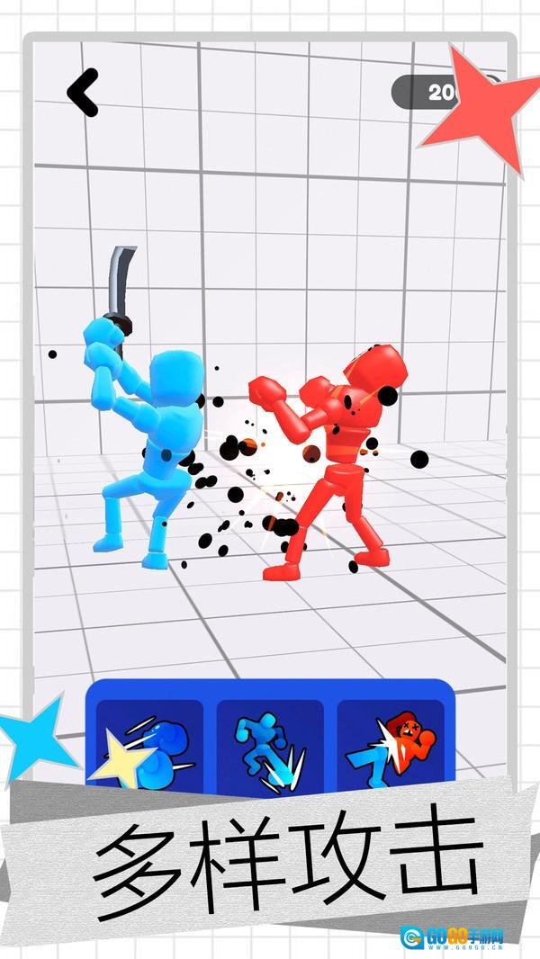 极限大闯关游戏是一款画风很简洁的火柴人格斗闯关游戏,红蓝双方的对决一触即发,选择好你的火柴人英雄,深入战场来开启本次激情对决,你需要运用一招一式来击败对手,随机匹配其他的真实玩家来参与较量,最终看看谁是真正的功夫之王。