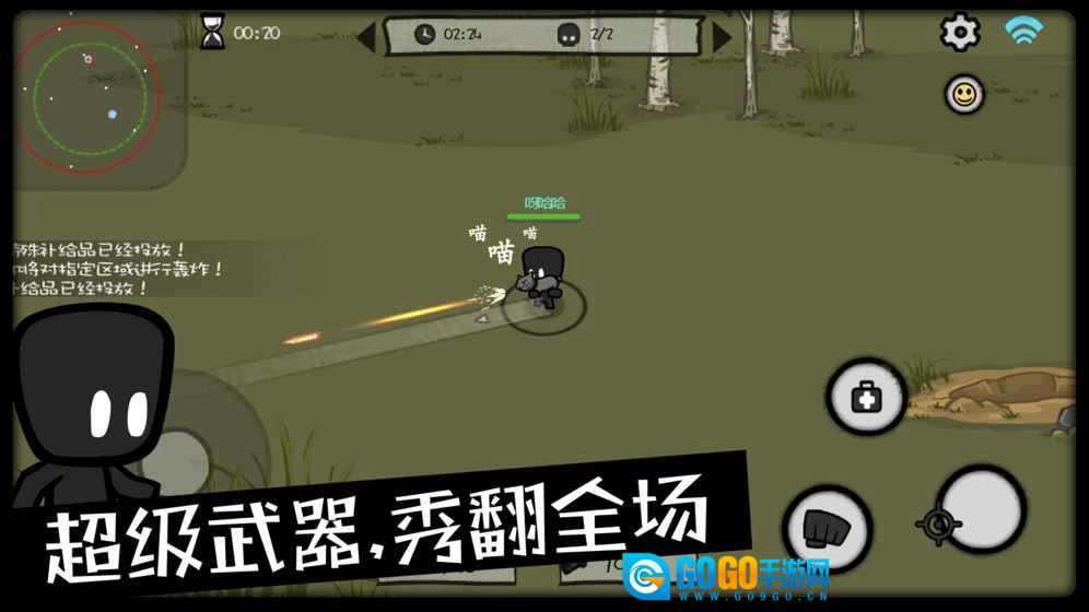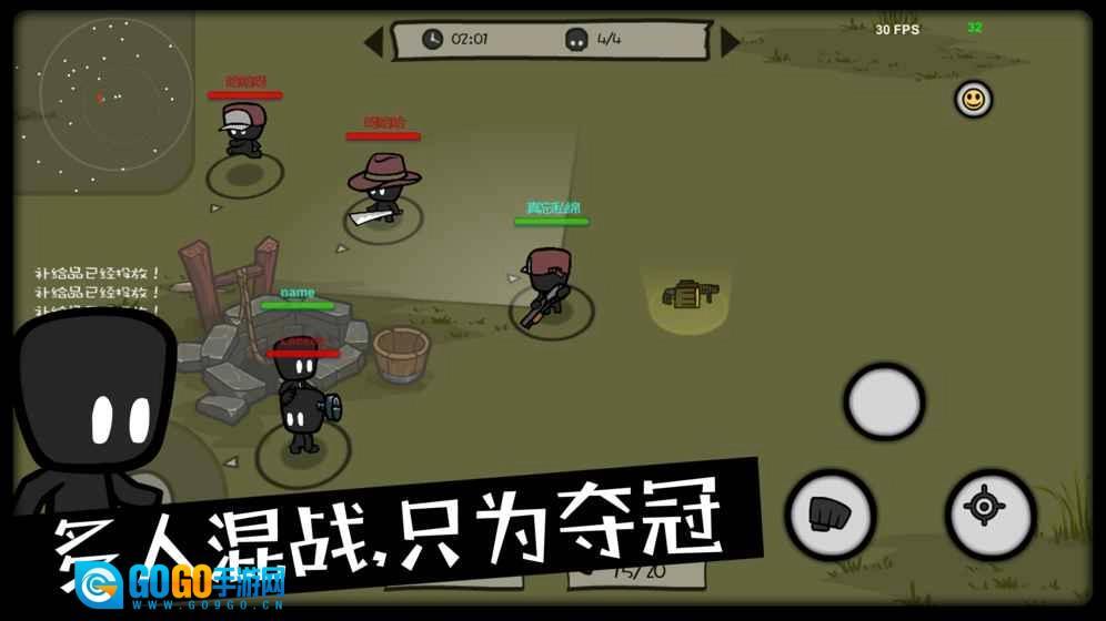 《影子大乱斗》是一款多人在线大乱斗游戏,支持最多20人同场竞技。